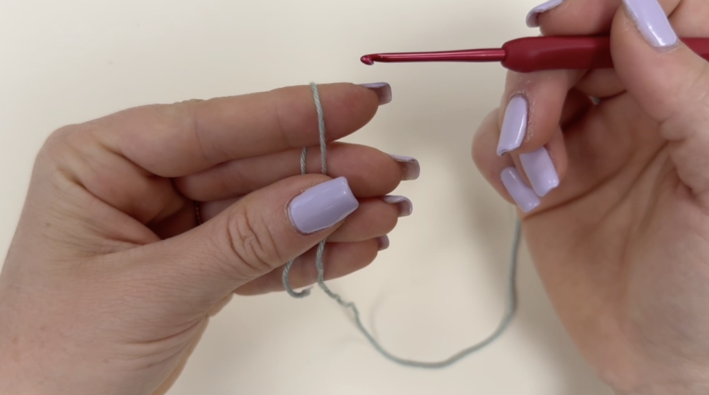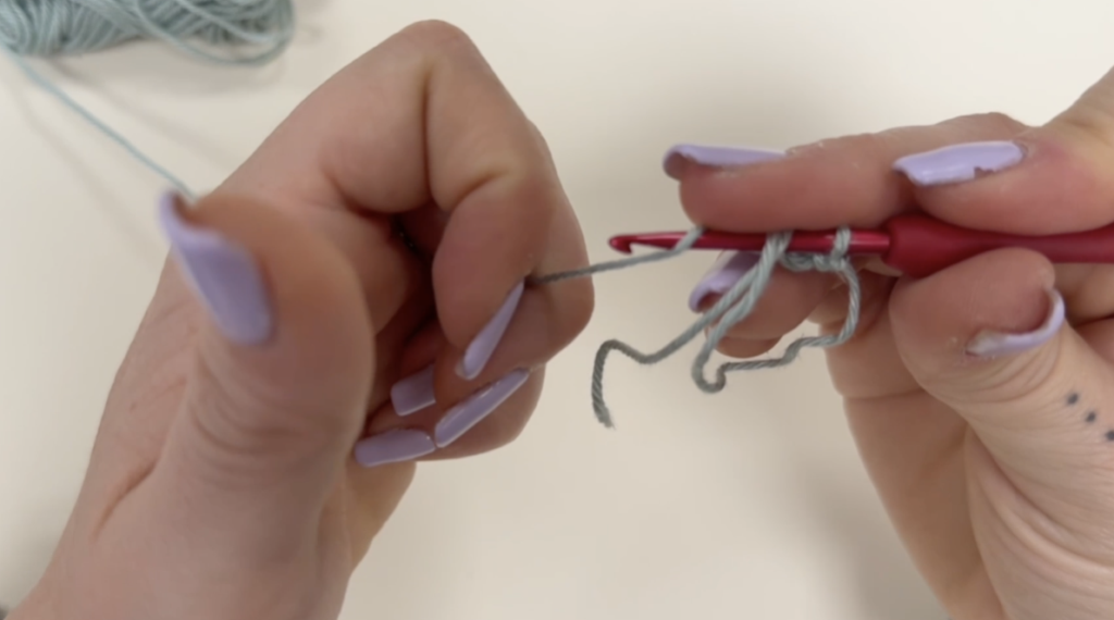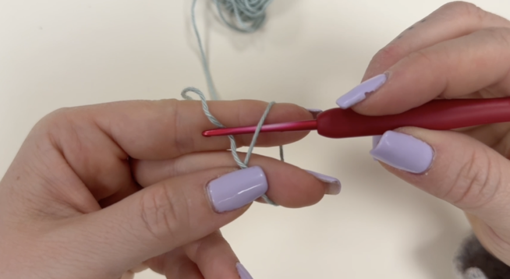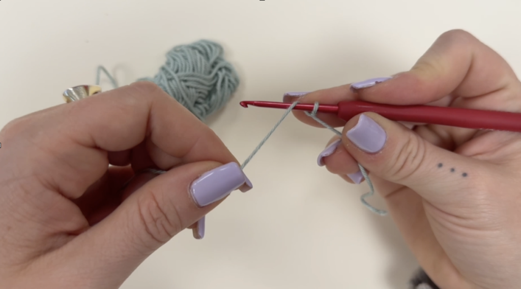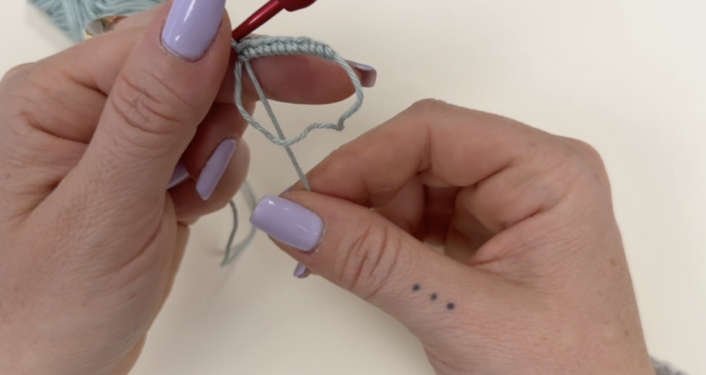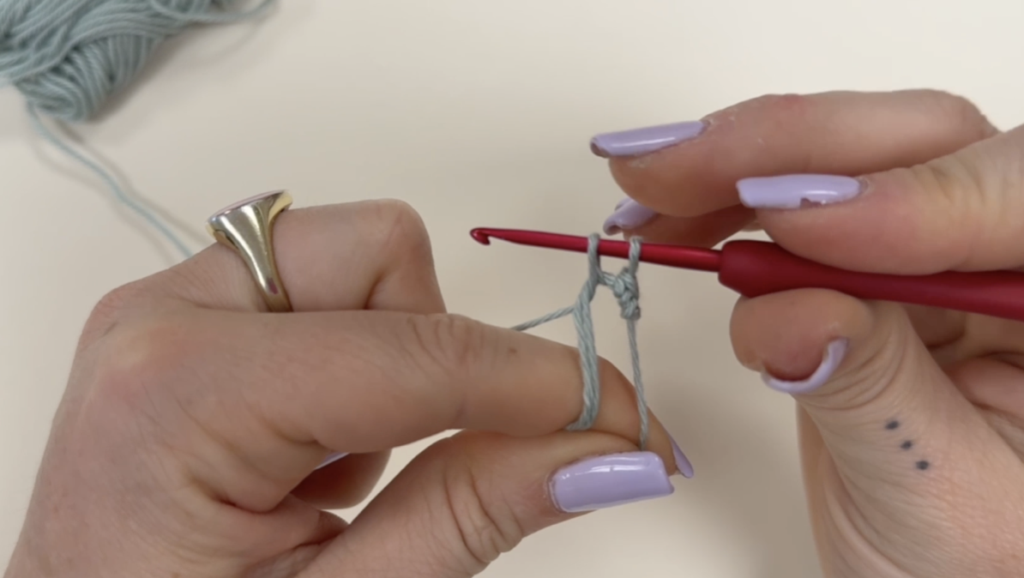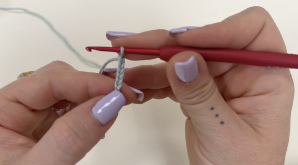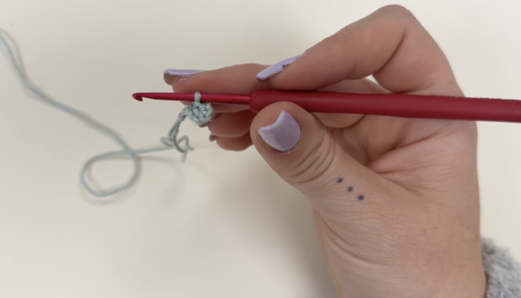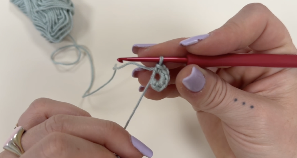 Suite à cela, tu fais 6 mailles en l’air. Résultat 👉 Une petite chaînette apparaît.
