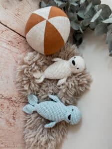 Finissez par 1 mc puis coupez le fil et fermez l’ouvrage : à l’aide de votre aiguille, passez votre fil fraîchement coupé dans les brins avant du dernier rang puis tirez fermement. Rentrez le fil pour le cacher.