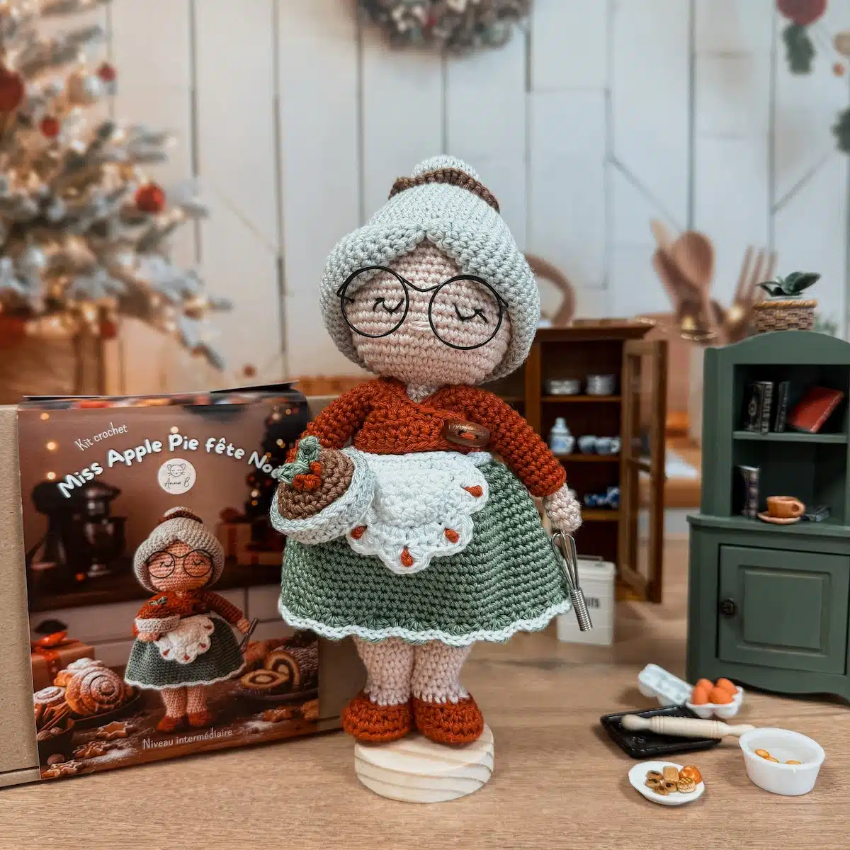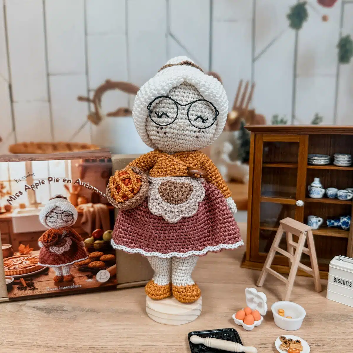 🍎 Kit Crochet – Miss Apple Pie, la petite mamie pâtissière