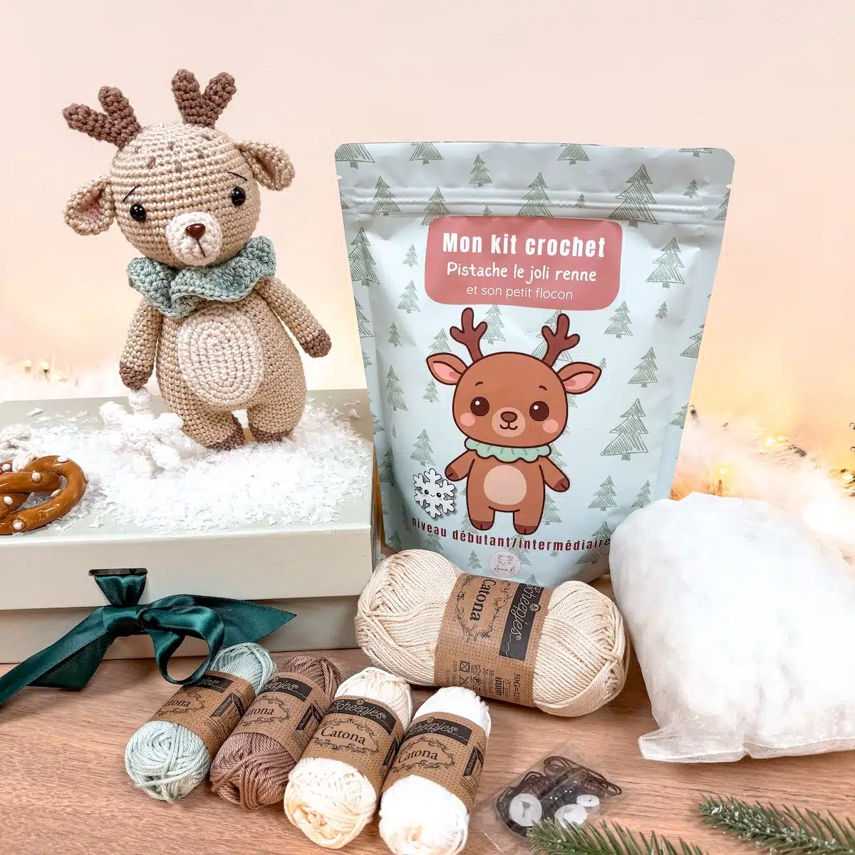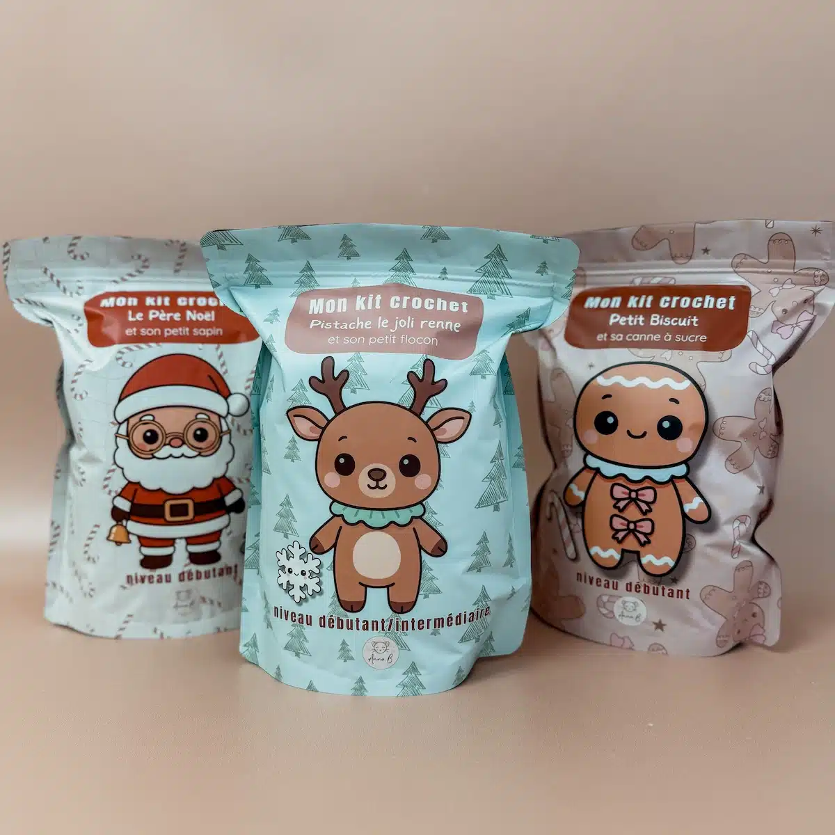 Plongez dans la magie des fêtes avec nos kits de crochet prêts à l’emploi. Père Noël, Renne ou Pain d’Épice : chaque kit contient tout le matériel et les explications pas à pas pour réaliser un compagnon de Noël doux, chaleureux et fait main.